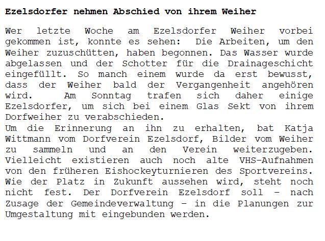Ezelsdorfer nehmen Abschied von ihrem Weiher